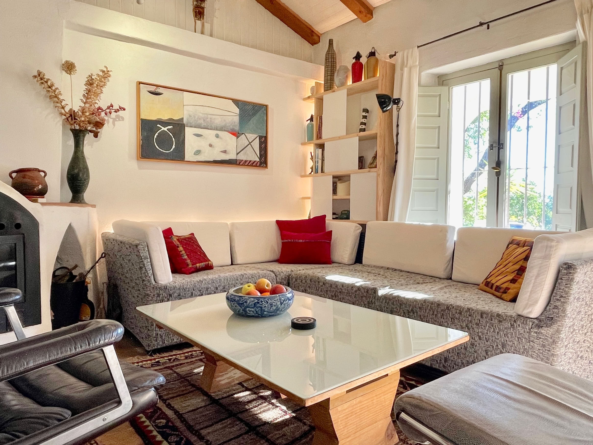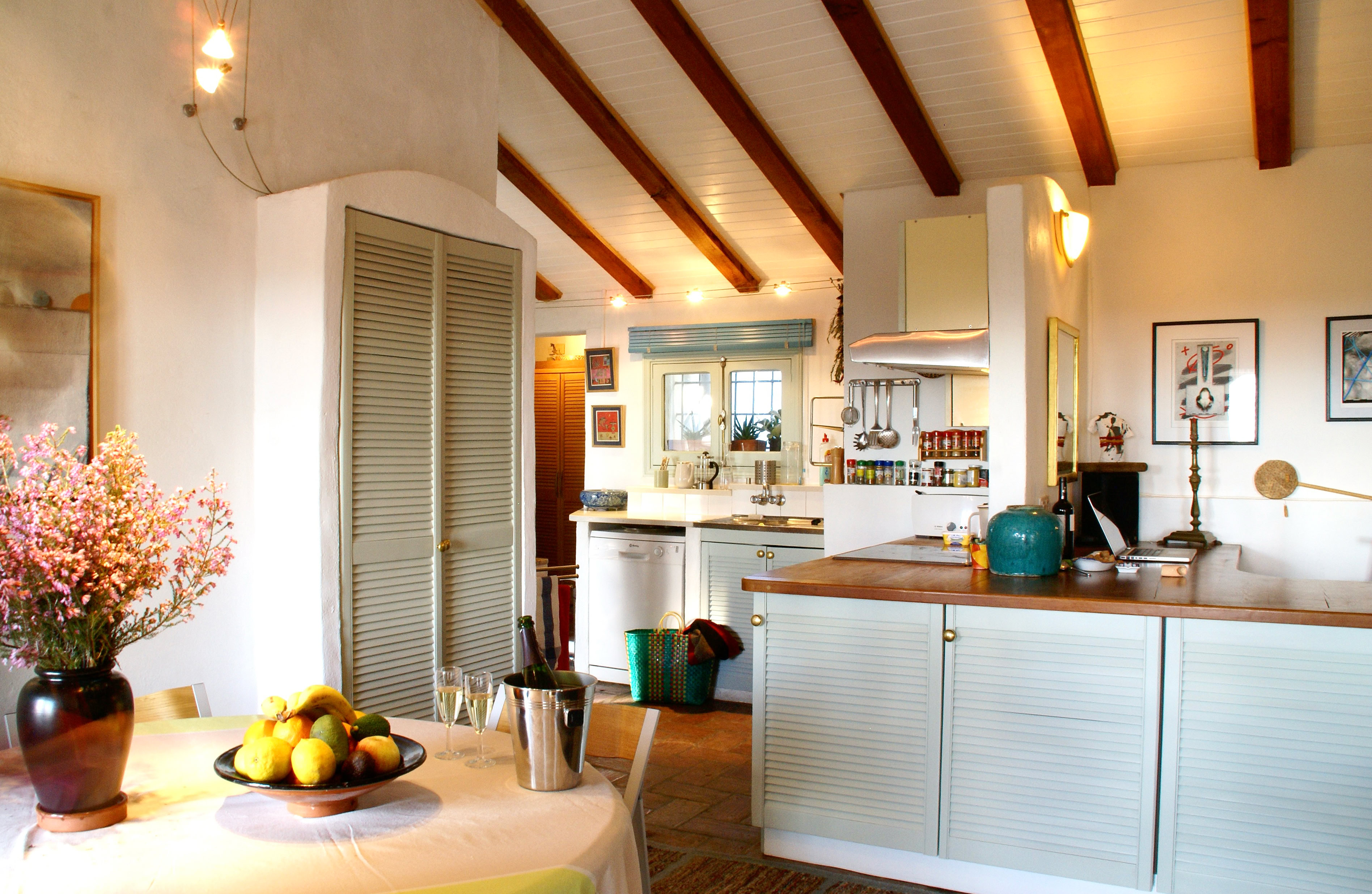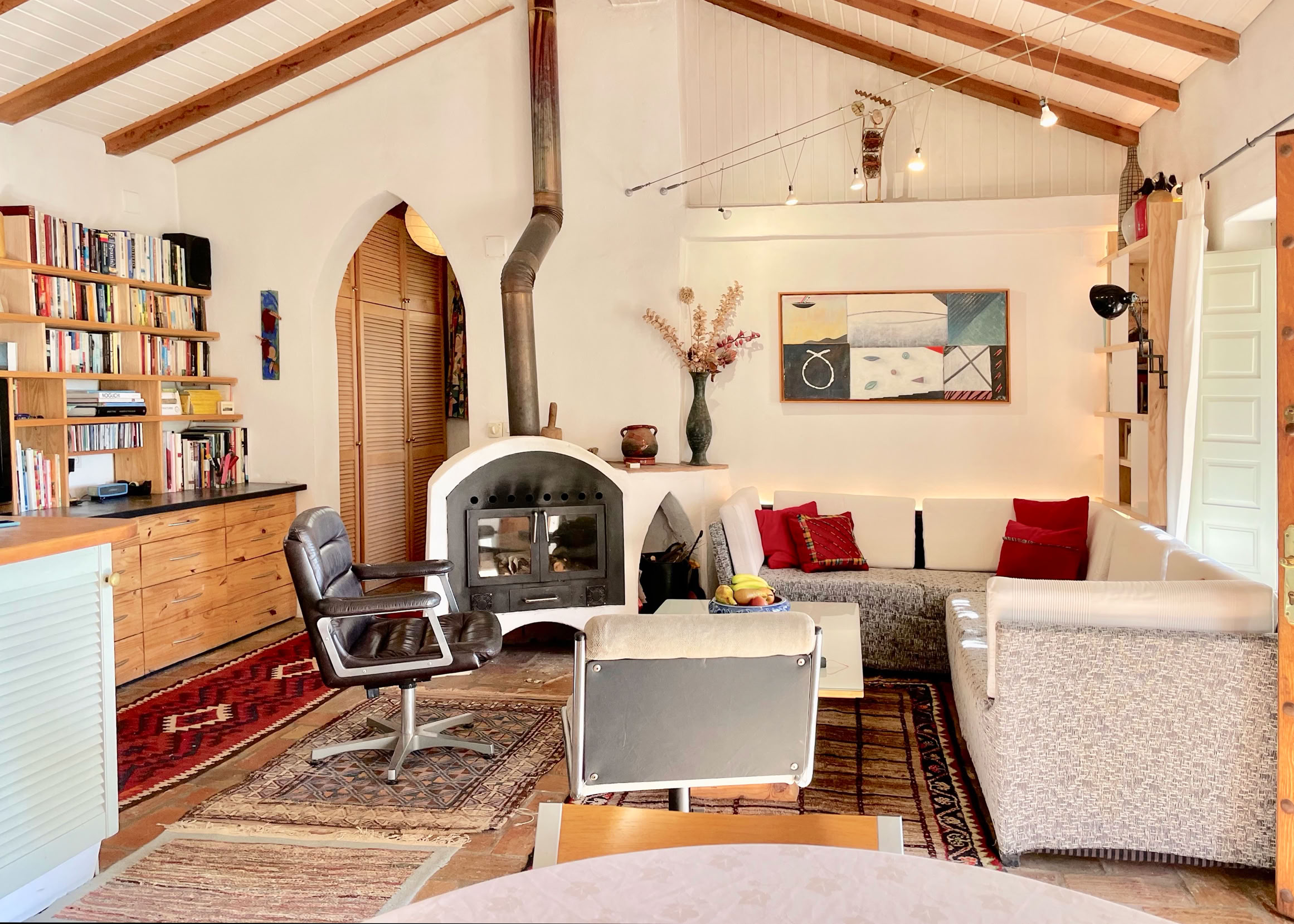 The centre of the house is a large living/dining room with a log burning Nordic stove (with glass doors). The house has full central heating with a large central ceiling fan in the living room. The bedrooms have air conditioning as well as portable fans.