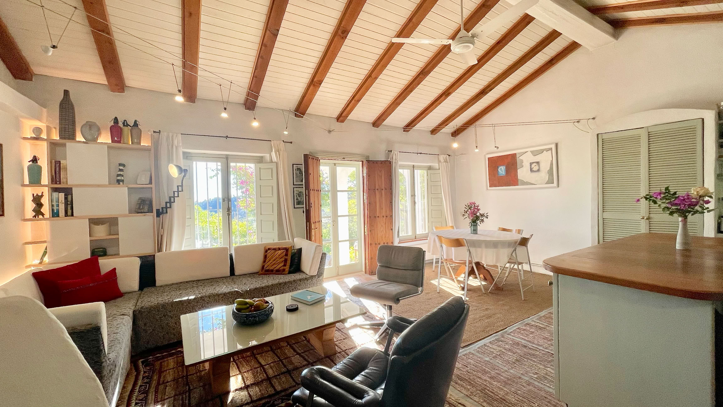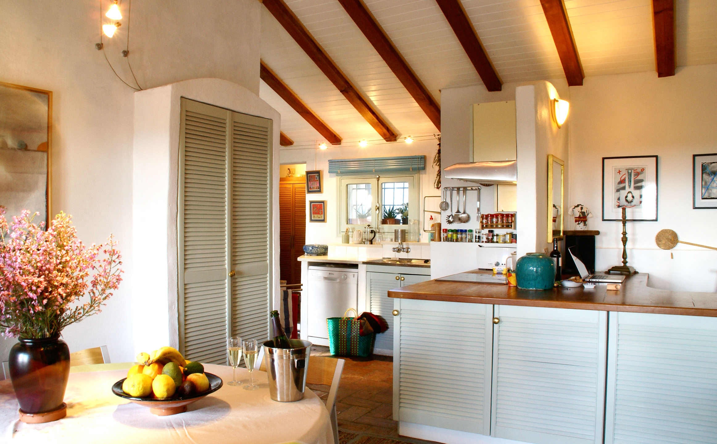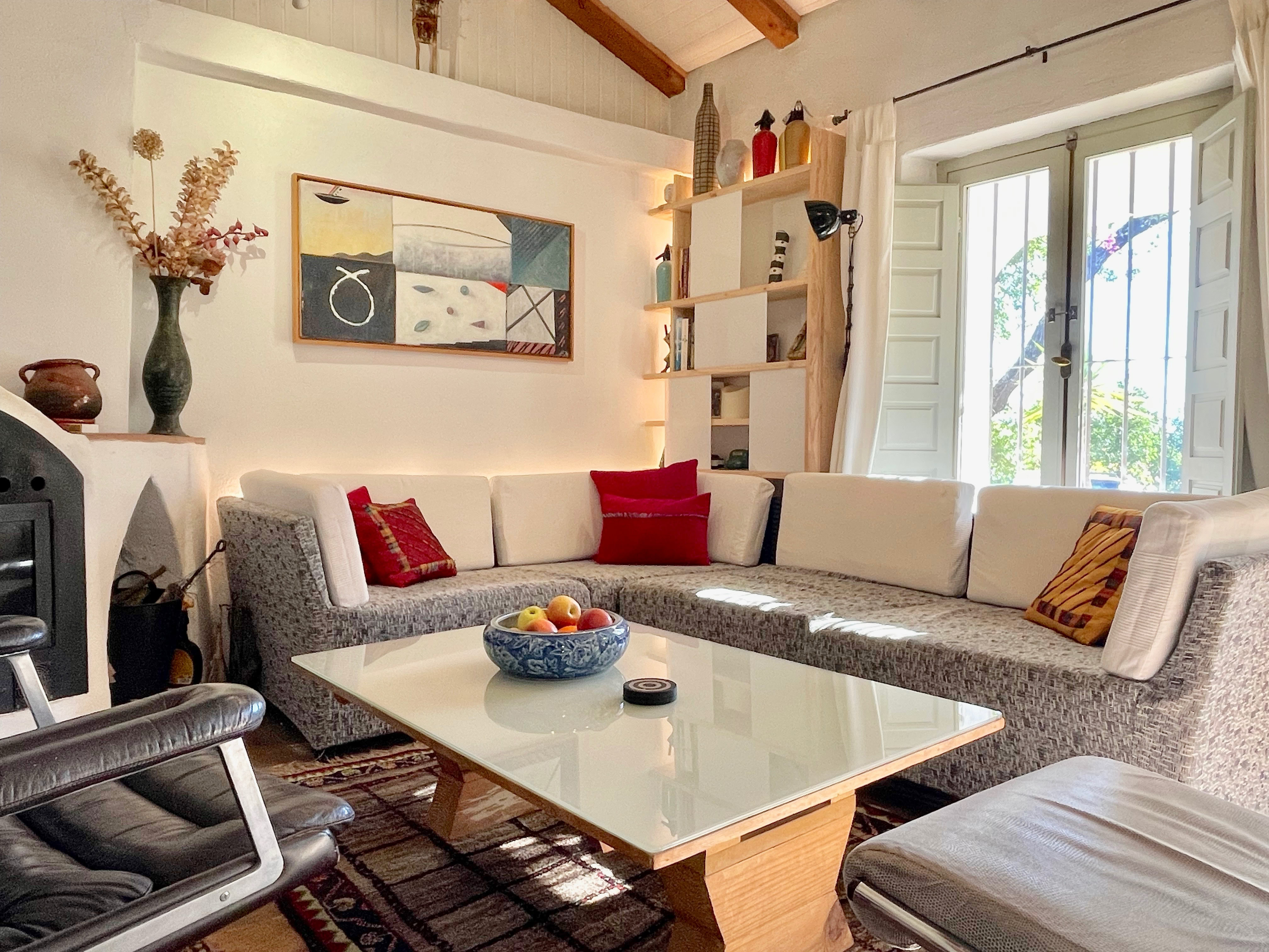 The centre of the house is a large living/dining room with a log burning Nordic stove (with glass doors). The house has full central heating with a large central ceiling fan in the living room. The bedrooms have air conditioning as well as portable fans.